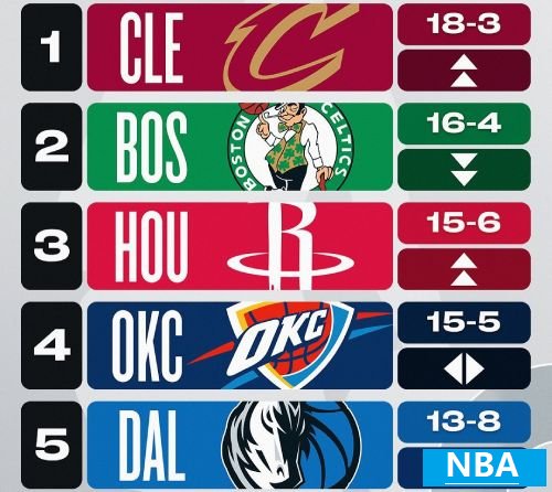 12月3日,NBA官网更新了最新(第七期)实力排行榜,其中骑士超越凯尔特人升至榜首,火箭冲至第三,雷霆和小牛紧随其后,快船上升两位至第六,勇士下滑至第八,湖人下滑一位至第十三。